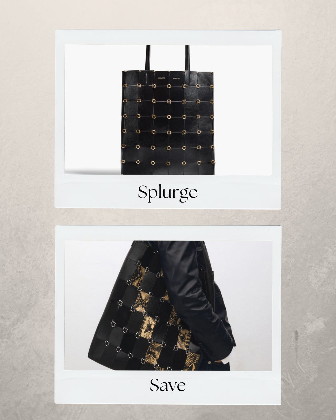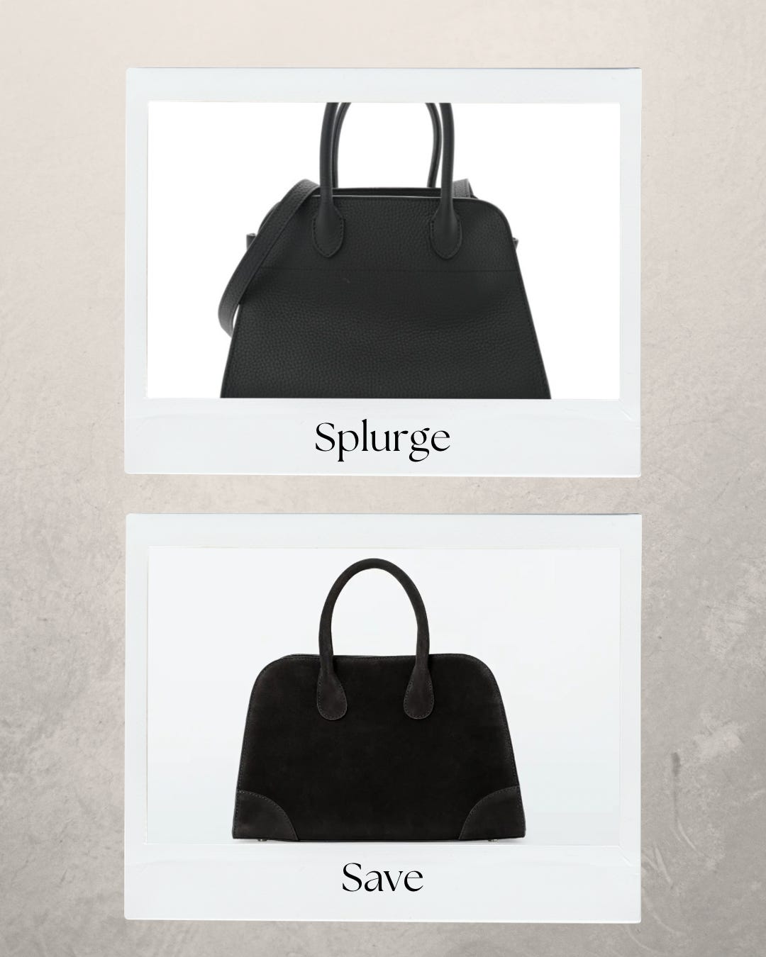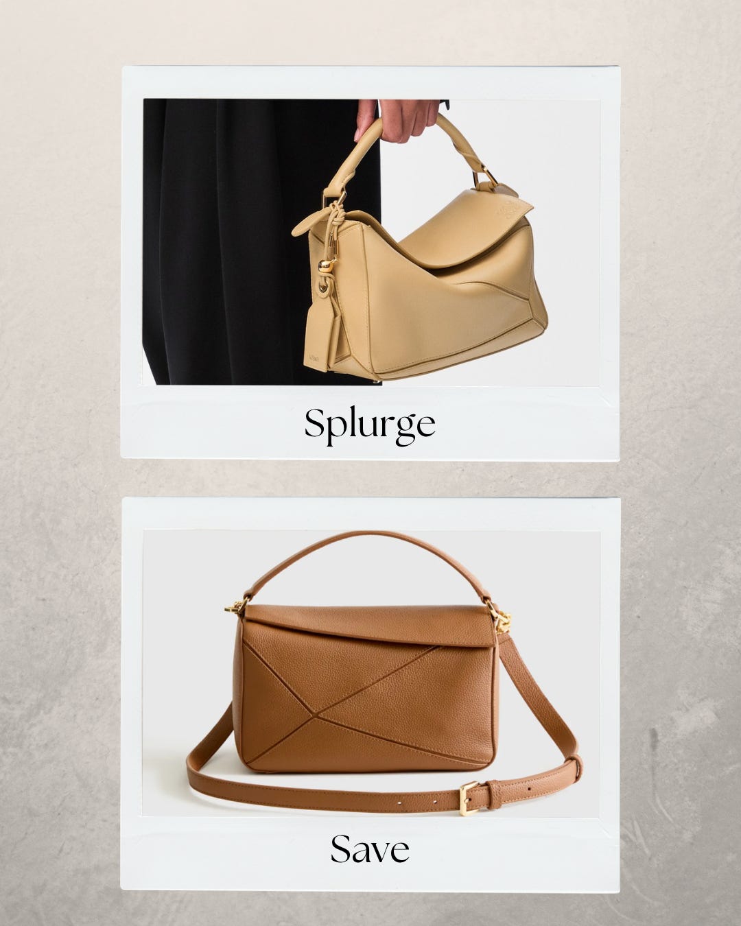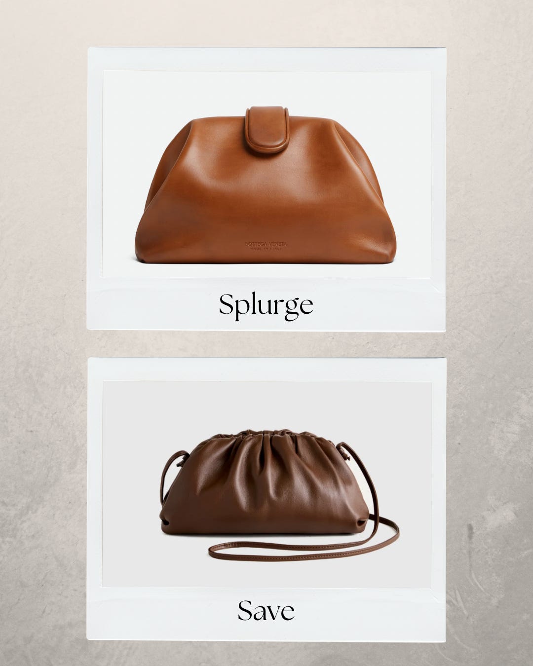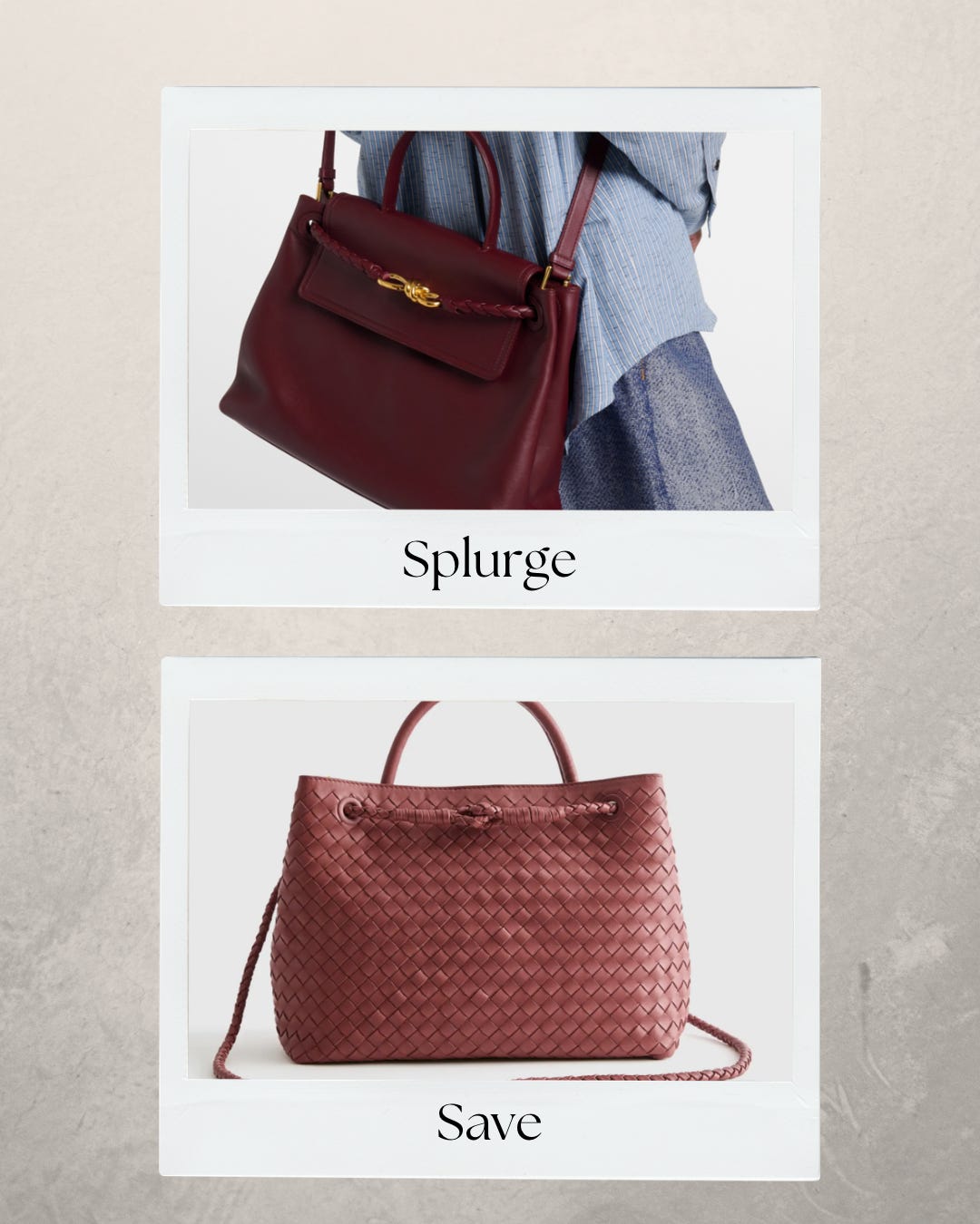 I also think it’s important to mention in the time of social media where it seems like everyone has expensive items and you HAVE to have the latest and greatest trends, that you can absolutely still find good quality and stylish pieces for better value. This topic can obviously be expanded on so much if we get into the sustainability aspects of fashion, but we are just keeping it more simple right now. I am focusing this article on comparing some designer pieces with more affordable similar styles (not the “D” word, I’m personally not someone who will share or buy items pretending to be something they are not with logos etc). I do love the “splurge” items on all of these, so just depending on where these fall for you on the scale of splurge vs save, I think both options are great!